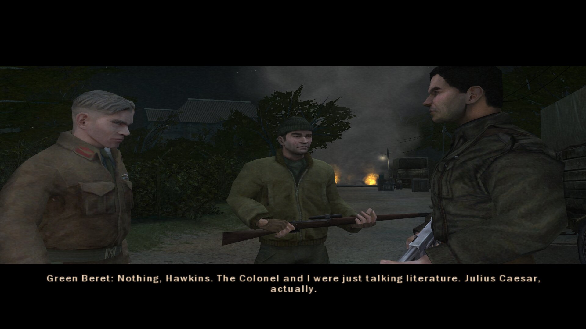 Poročnik Hawkins (ostrostrelec) seje smrt od daleč, pri tem pa lahko za večjo natančnost zadrži dih. Zelo uporaben je tudi od blizu, saj je s svojimi metalnimi noži skorajm neustavljiv, zna pa tudi dobro plavati. S pomočjo kovancev ali cigaret lahko preusmeri pozornost, a če povem po pravici, tega nisem uporabil niti enkrat.