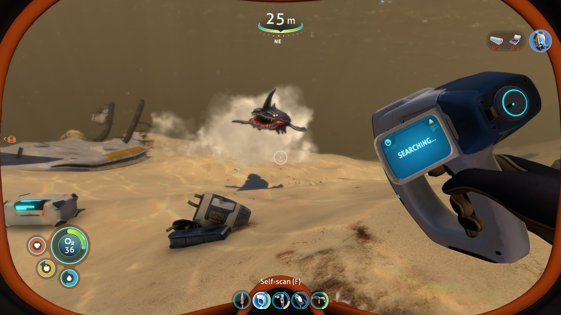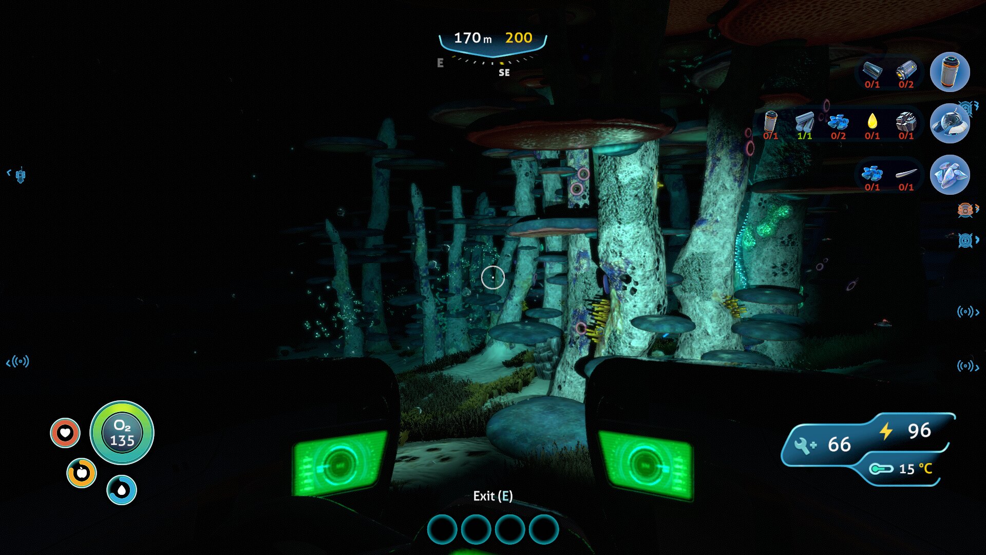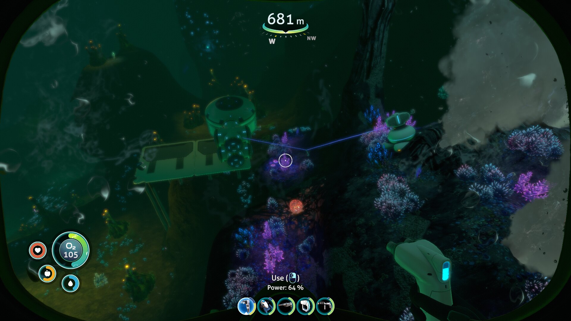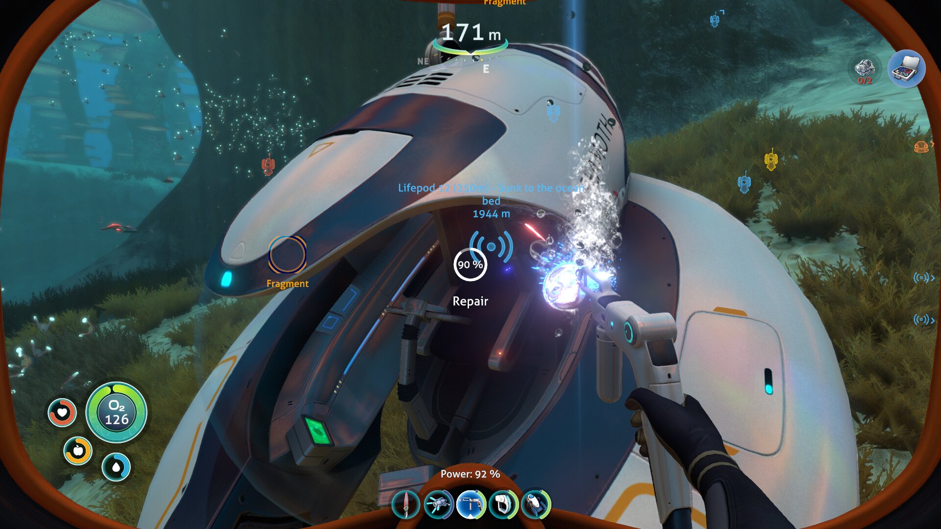 Ravno raziskovanje je po mojem najboljši del igre Subnautica in v njem sem izjemno užival, čeprav ni brez napak — ena izmed njih je npr. odsotnost vsaj grobega zemljevida. Ob prihodu na planet je vaša rešilna kapsula v plitvinah (Safe Shallows), kjer v okolici mrgoli živali ter rastlinja, s katerimi si potešite lakoto in žejo, ali pa iz njih kaj naredite. Že par deset metrov naprej se globina poveča in 45 sekund kisika postane precejšnja omejitev, a ste na srečo našli ravno dovolj fragmentov, da se je odklenil propelerski pogon, ki zaradi občutno večje hitrosti omogoča bistveno globlje potope. Ob slednjih lahko končno začnete raziskovati potopljene razbitine, v katerih poleg dragocenih fragmentov najdete še podatkovne kartice z recepti. Vmes nadgrajujete bazo z najdenimi novimi materiali in si izboljšujete opremo, dokler ne najdete dovolj fragmentov za izdelavo prvega vozila. Znova sledijo še daljši potopi, pri katerih najdete dodatne recepte, dodate skener (Scanner Room), ki omogoča hitrejšo najdbo virov, zgradite pa si tudi dodatne baze, saj je več stometrski prenos predmetov (inventar je omejen) časovno zamuden. Tudi ribolov postane potraten, zato ustvarite vrtove in posadite rastline, s katerimi se okrepčate pred pustolovščino, bolje pa je treba tudi načrtovati polnjenje baterij. Tako polagoma povečujete globino in s samim igranjem napredujete po zgodbi, zaradi raznolikih biomov (slednjih je preko 30!) pa je vsak potop zanimiv in zna tudi po več urah igranja še vedno presenetiti.