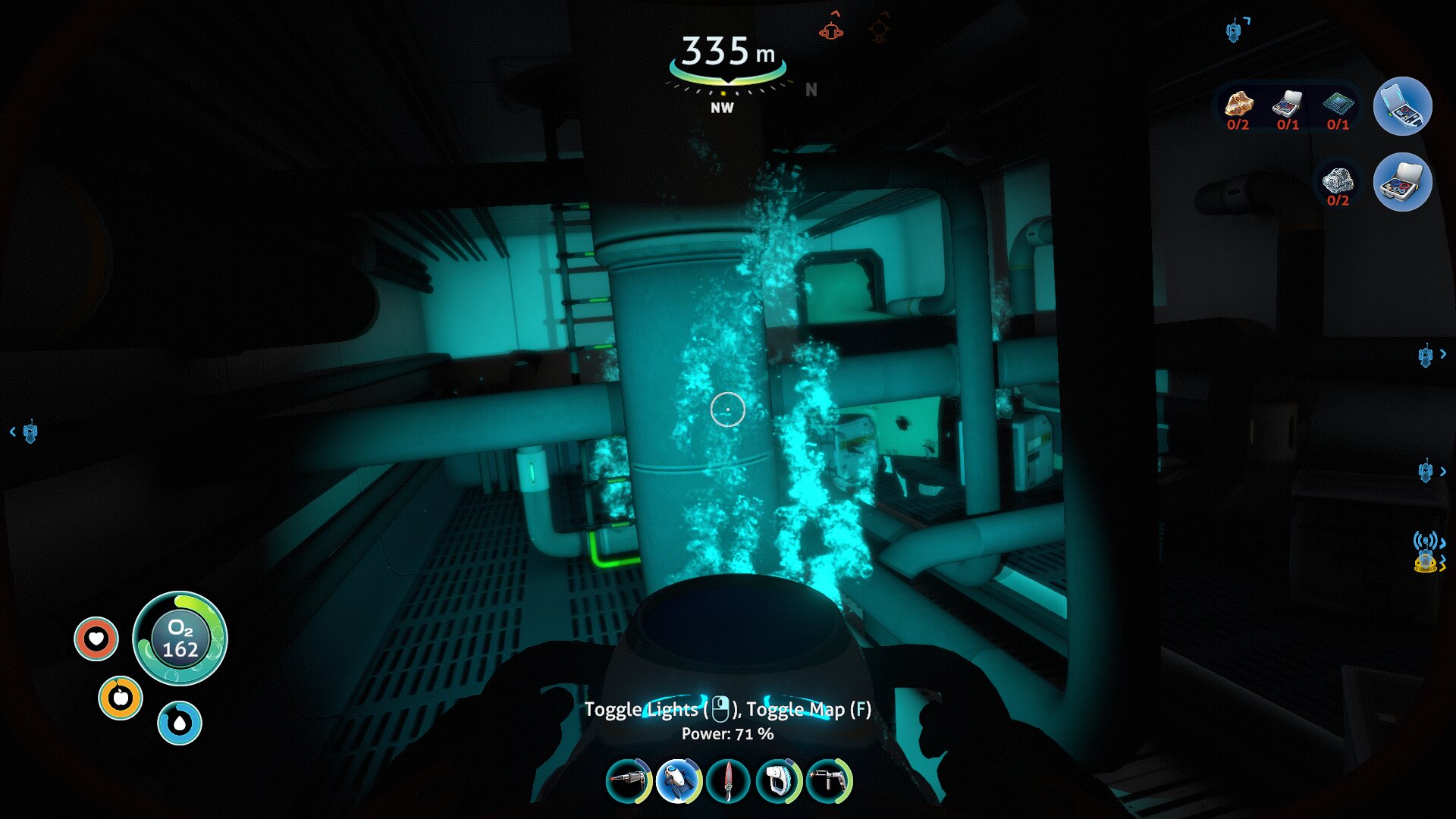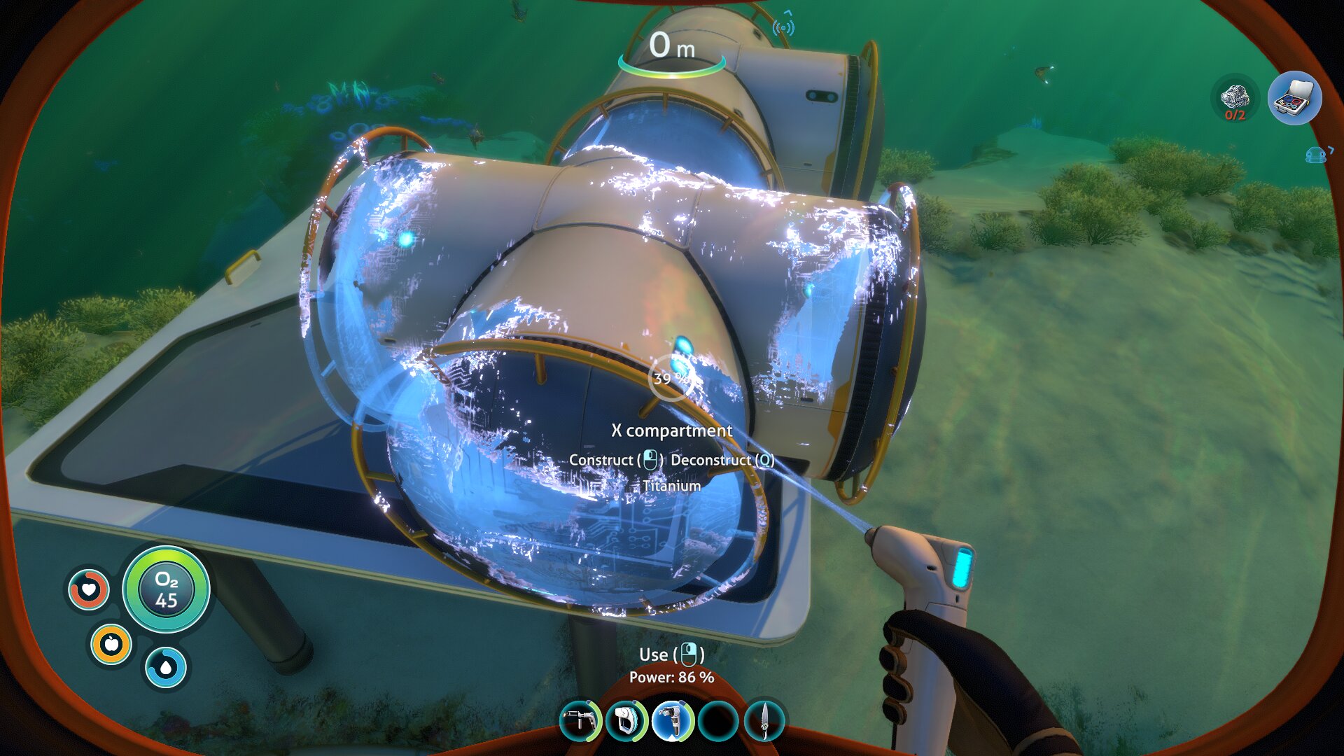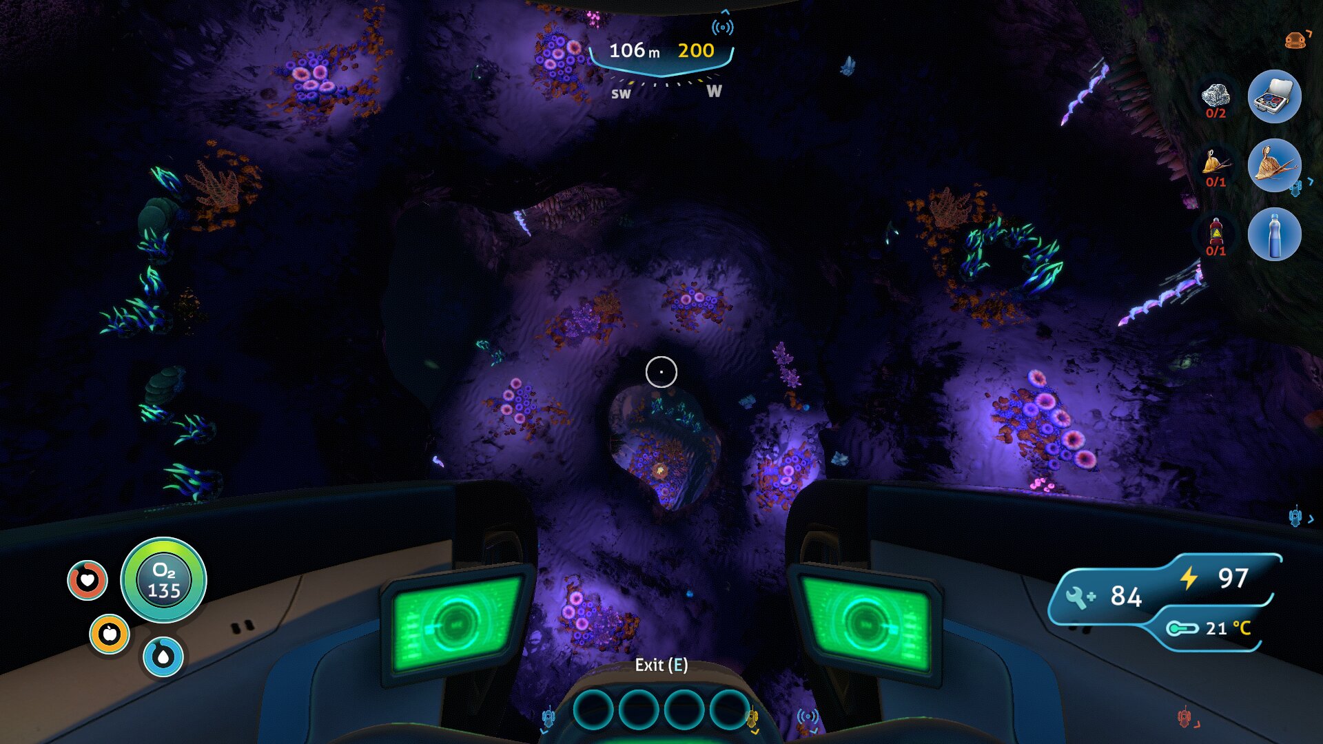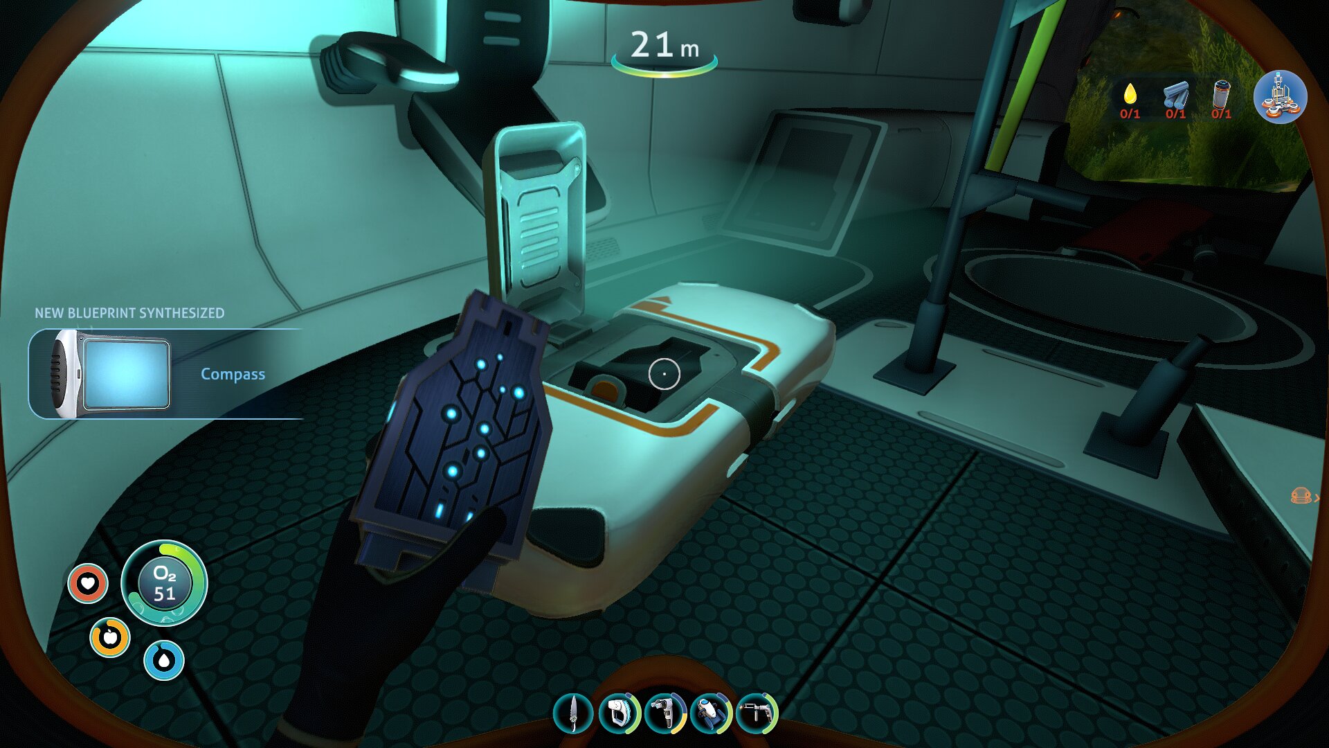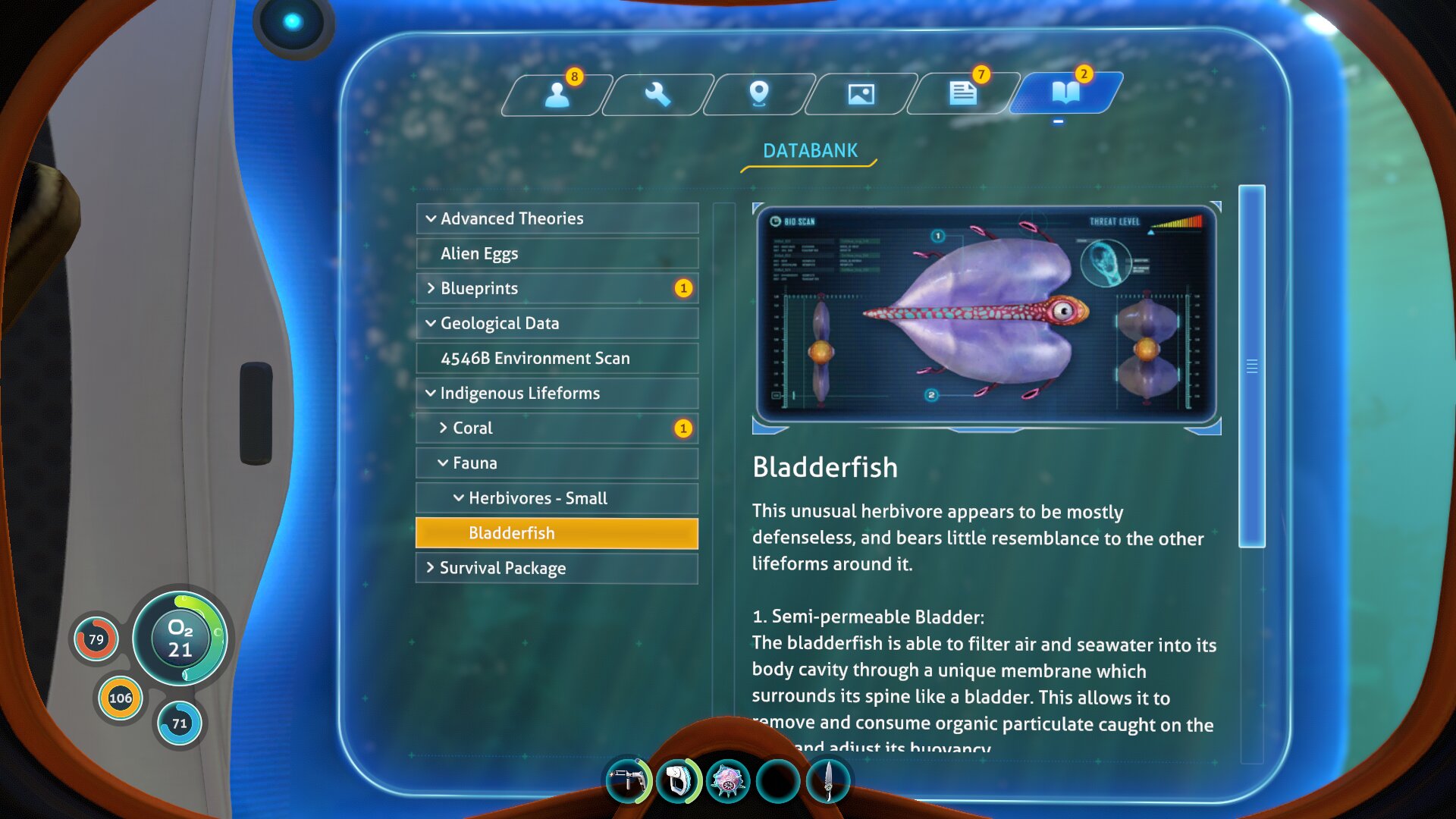 Ravno raziskovanje je po mojem najboljši del igre Subnautica in v njem sem izjemno užival, čeprav ni brez napak — ena izmed njih je npr. odsotnost vsaj grobega zemljevida. Ob prihodu na planet je vaša rešilna kapsula v plitvinah (Safe Shallows), kjer v okolici mrgoli živali ter rastlinja, s katerimi si potešite lakoto in žejo, ali pa iz njih kaj naredite. Že par deset metrov naprej se globina poveča in 45 sekund kisika postane precejšnja omejitev, a ste na srečo našli ravno dovolj fragmentov, da se je odklenil propelerski pogon, ki zaradi občutno večje hitrosti omogoča bistveno globlje potope. Ob slednjih lahko končno začnete raziskovati potopljene razbitine, v katerih poleg dragocenih fragmentov najdete še podatkovne kartice z recepti. Vmes nadgrajujete bazo z najdenimi novimi materiali in si izboljšujete opremo, dokler ne najdete dovolj fragmentov za izdelavo prvega vozila. Znova sledijo še daljši potopi, pri katerih najdete dodatne recepte, dodate skener (Scanner Room), ki omogoča hitrejšo najdbo virov, zgradite pa si tudi dodatne baze, saj je več stometrski prenos predmetov (inventar je omejen) časovno zamuden. Tudi ribolov postane potraten, zato ustvarite vrtove in posadite rastline, s katerimi se okrepčate pred pustolovščino, bolje pa je treba tudi načrtovati polnjenje baterij. Tako polagoma povečujete globino in s samim igranjem napredujete po zgodbi, zaradi raznolikih biomov (slednjih je preko 30!) pa je vsak potop zanimiv in zna tudi po več urah igranja še vedno presenetiti.